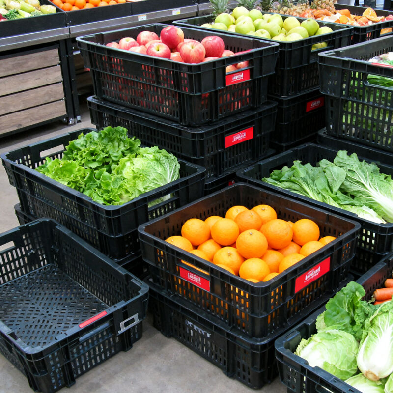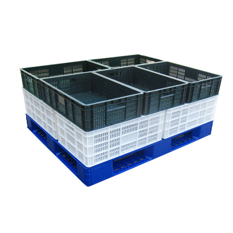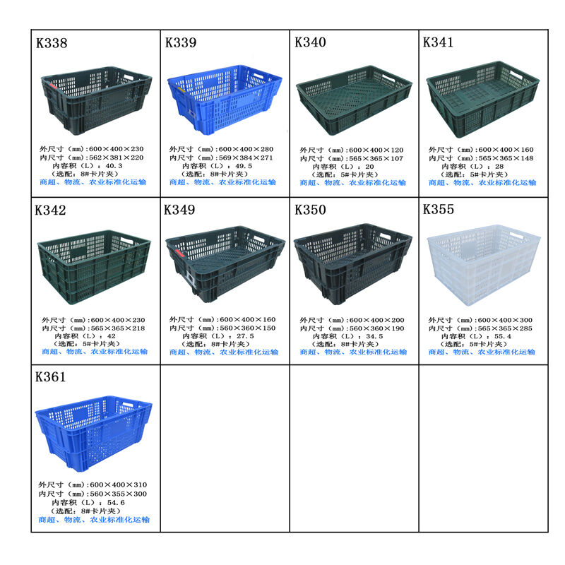 Standard plastic baskets have uniform specifications and are wear-resistant, compatible with common pallets. They are efficiently used for cargo turnover and storage, helping to reduce costs and enhance efficiency.