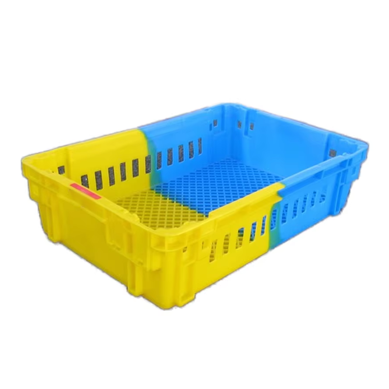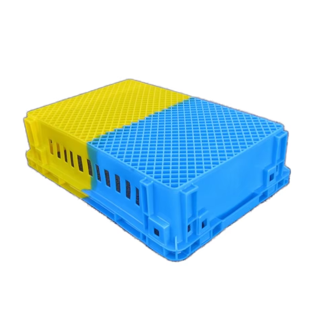 Two-color plastic turnover baskets are mainly used in logistics transportation, food sorting, fruit and vegetable transportation and other fields, and have the characteristics of impact resistance and easy stacking.