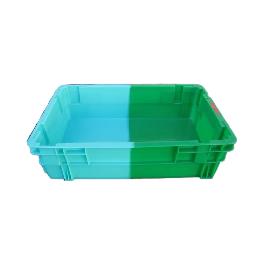 Two-color plastic turnover baskets are mainly used in logistics transportation, food sorting, fruit and vegetable transportation and other fields, and have the characteristics of impact resistance and easy stacking.