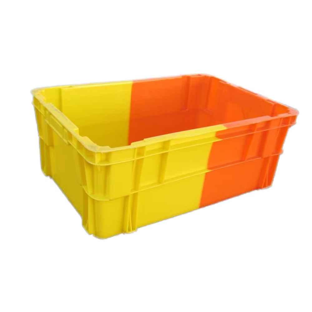 Two-color plastic turnover baskets are mainly used in logistics transportation, food sorting, fruit and vegetable transportation and other fields, and have the characteristics of impact resistance and easy stacking.